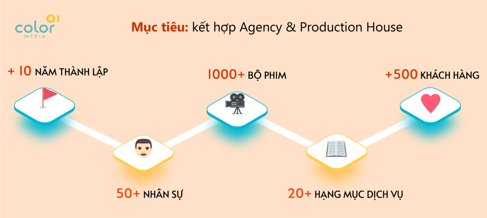 Thành lập từ năm 2010, hơn 12 năm hoạt động, ColorMedia tự hào là một nhà sản xuất TVC, Phim quảng cáo, Phim doanh nghiệp dẫn đầu thị trường. Trong những năm qua, chúng tôi luôn nỗ lực hết mình để thay đổi quan niệm, nhận thức của Khách hàng, Đối tác nhằm mang đến một tư duy mới mẻ, hiện đại về cách làm Phim doanh nghiệp tiêu chuẩn quốc tế. Bên cạnh đó, chúng tôi còn cung cấp dịch vụ tư vấn chiến lược thương hiệu, truyền thông và marketing theo yêu cầu Khách hàng.