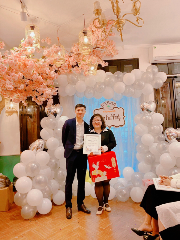 Để nhìn lại chặng đường hình thành và phát triển của Happywork trong năm 2022, không thể không nhắc đến những cán bộ nhân viên, những mảnh ghép tạo nên Happywork. Ban lãnh đạo đã trao tặng bằng khen và những món quà ý nghĩa đến những cán bộ, nhân viên có thành tích xuất sắc trong năm 2022.