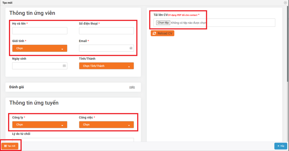 5. Tạo Hồ sơ ứng viên trên Hệ thống