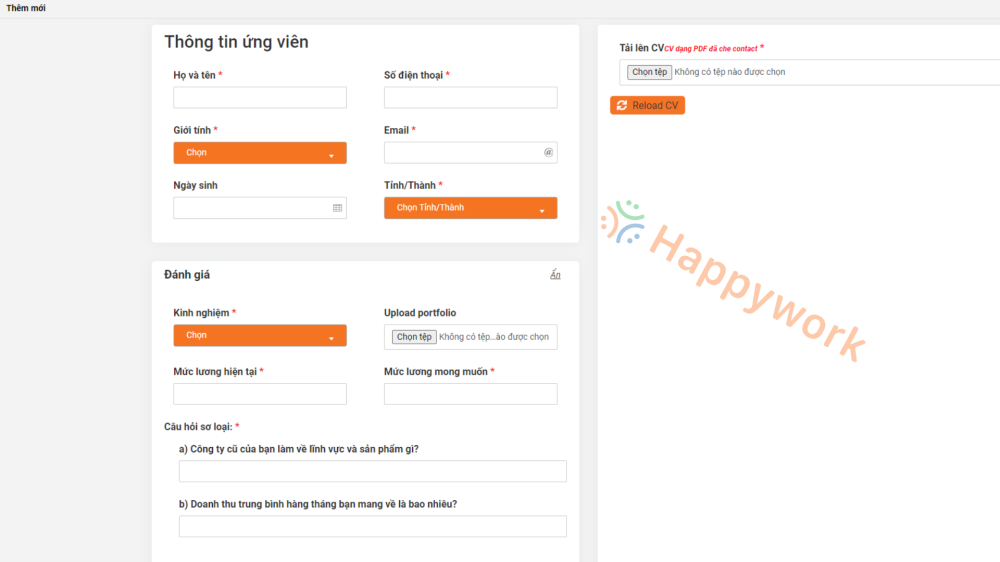 - HR Freelancer chủ động lấy các thông tin đánh giá năng lực cần thiết từ ứng viên và điền vào phần đánh giá khi up CV lên hệ thống