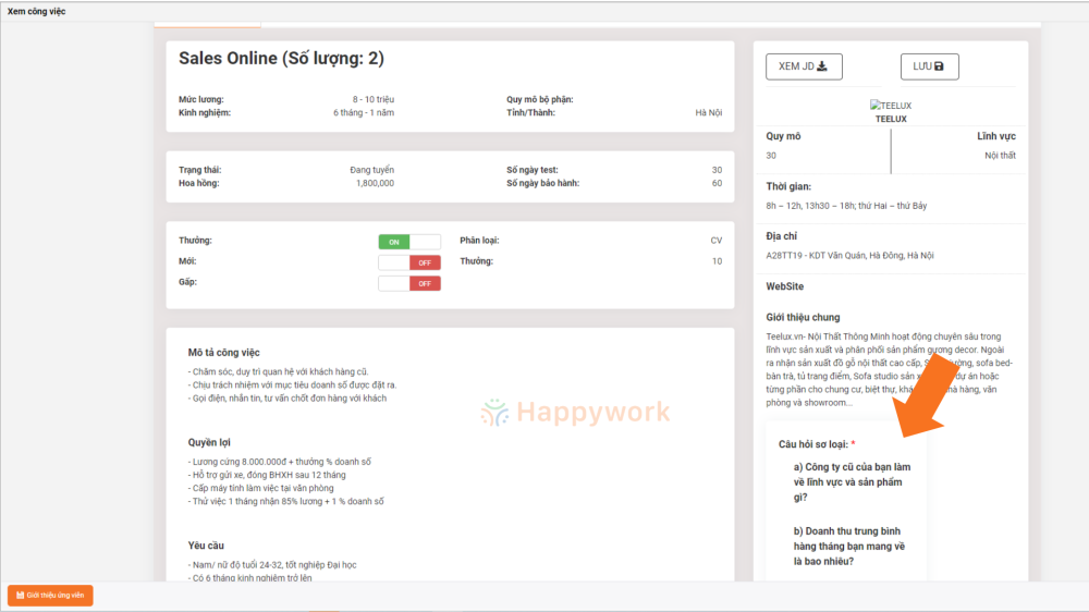 1.Thêm thông tin cần hỏi ngay tại JD khi đăng tuyển.