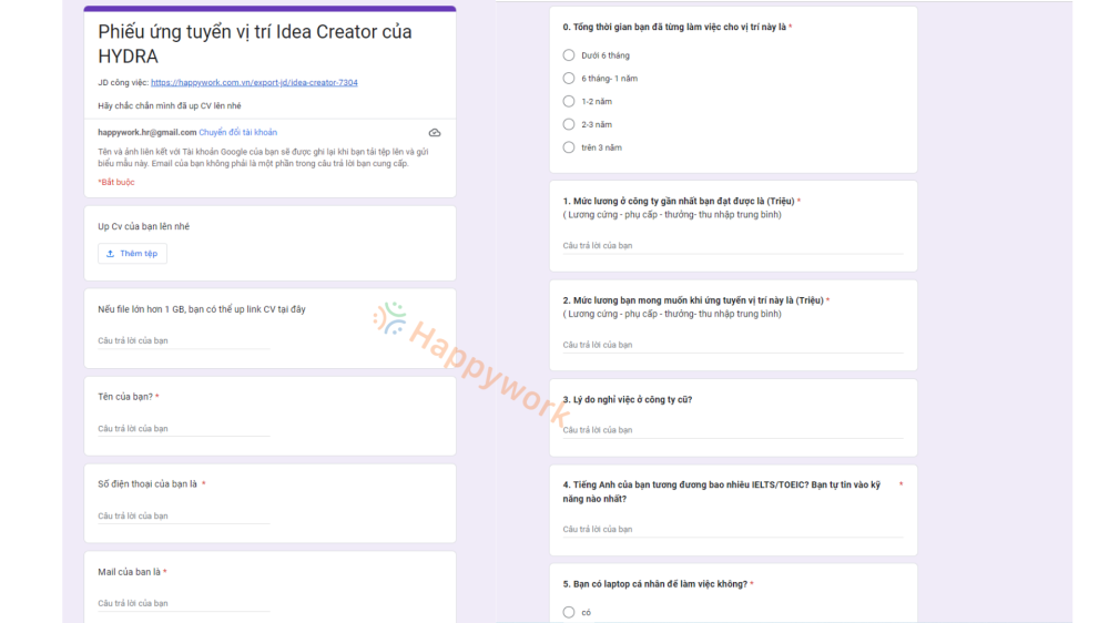 2. Tạo file ứng tuyển cho từng job: